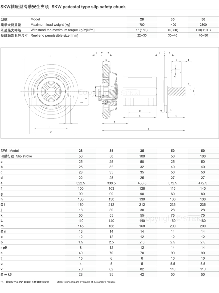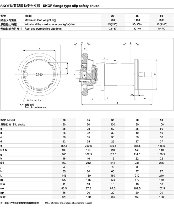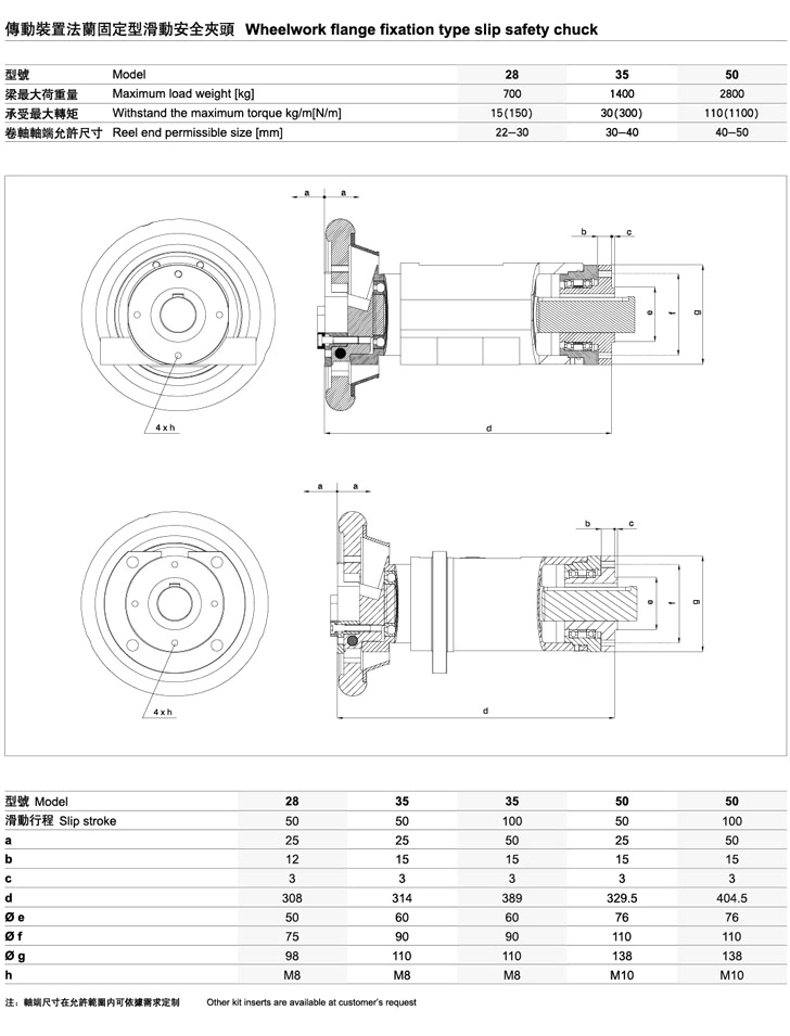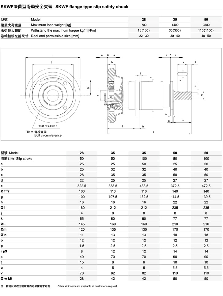 滑動型安全夾頭 技術(shù)參數(shù) 單位:mm
